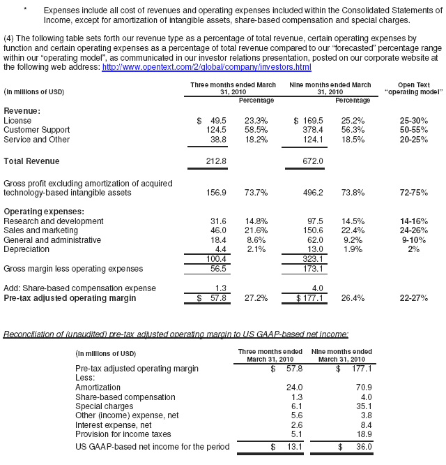 Open Text Reports Third Quarter Fiscal 2010 Financial Results