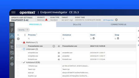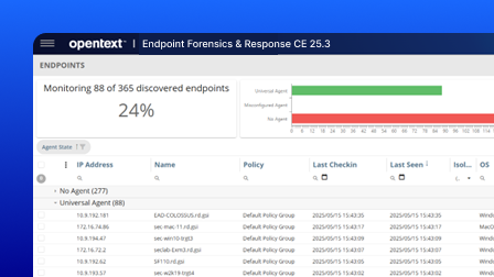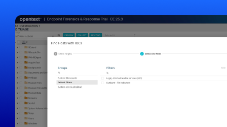Unify deep forensic visibility with live incident response. OpenText™ Endpoint Forensics & Response enables SOC teams to investigate threats, isolate compromised endpoints, and remediate attacks, all from a single, scalable platform. Put precision and visibility in the hands of security professionals by uniting trusted forensic investigation capabilities with advanced threat response functionality.